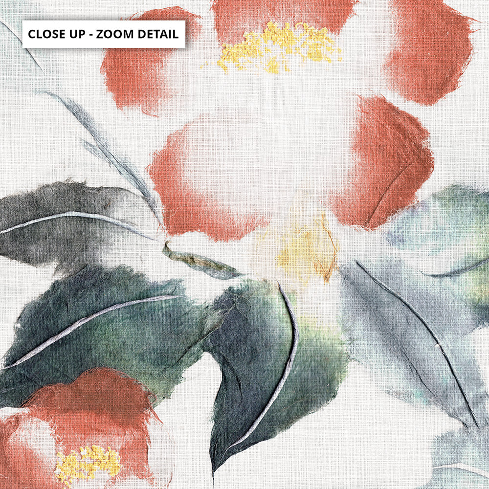 Oriental Paper Flowers Linen III - Art Print, Poster, Stretched Canvas or Framed Wall Art, Close up View of Print Resolution