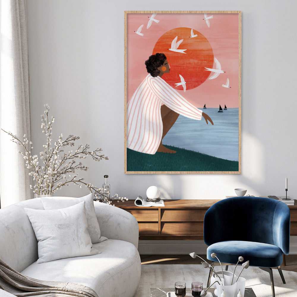 The Woman at Sunset - Art Print by Bea Muller