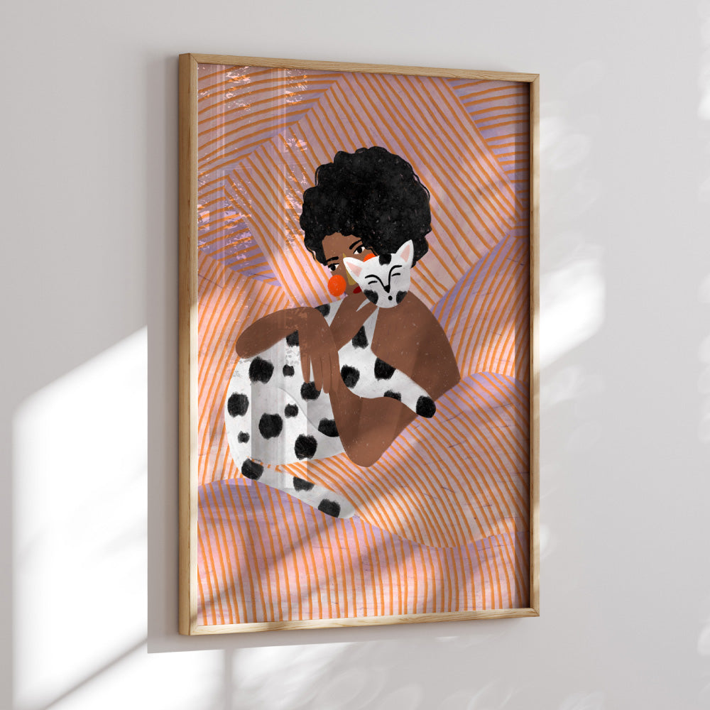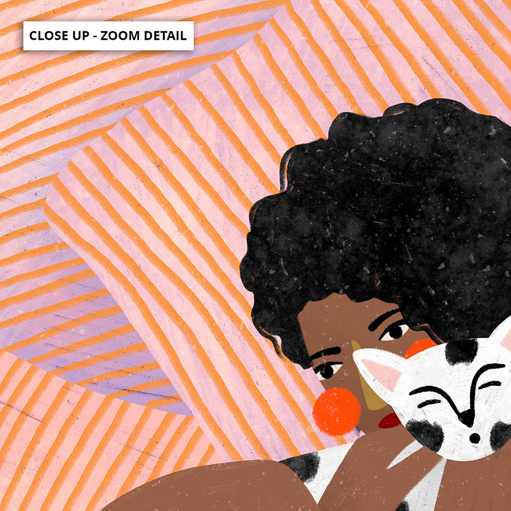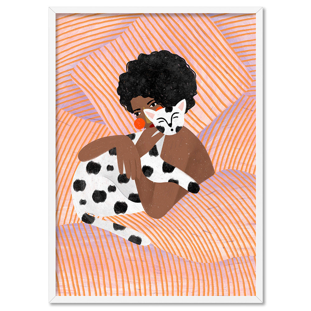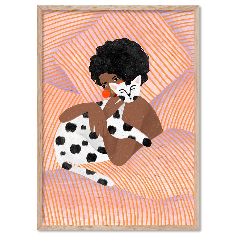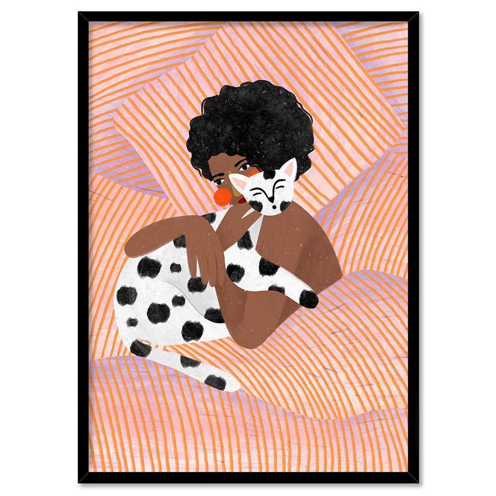 The Woman with the Dotty Cat - Art Print by Bea Muller